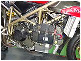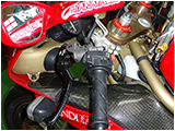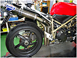 サイレンサーは純正テルミのスリップオン。この場合使用するEPロムは#073というタイプなりますが、916/996SPSの場合ノーマルサイレンサー用の#071であろうと#073であろうとエンジン始動後に水温が上がるまでアイドリングしません。これが正常と言えば正常なのですが、TFDではロムの内部データを書き換えて始動直後からアイドリングするようにしたロムを使用しています。ということでこのバイクも始動時はセル1発、そのままアイドリングします。