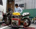 そしてこの3回のテストを通じてちょっと気になったことがありました。それは全テストを通じてタイムの進歩が見られなかったということです。ライダー小山にとってこんな事は昔からあまり無かったのですが、今回は今まで乗ったことも無いような高い戦闘力を持ったマシンであることに加えて、長いレースのブランクと滅多に出たことのない全日本という、いろいろなプレッシャーがかなりきつかったようです。彼も掲示板で言っていましたが、転倒して高価なマシンを壊してしまうことに対する怖れが、彼のライディングをかなりぎこちなくしてしまったように思えます。