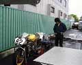 我々は雨中走行の為の全てのセッティングを駐車場の整備スペースで済ませ、それからパドックへ向かいました。
