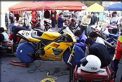 スタート前チェックを終えたマシンはその場で待機となり、タイヤにはウォーマーが巻かれて出番を待ちます。