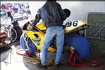 全日本と違い、サーキットに到着するやいなや予選に備えてタイヤウォーマーを装着。ワンデーレースならではです。