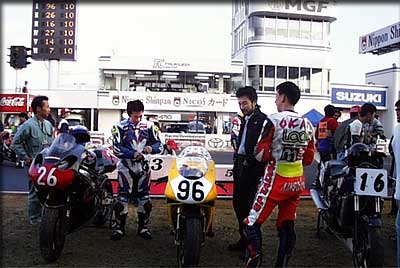10周を終えて...優勝おめでとう!岡田選手。2位はSB8Rの新井秀也選手、3位はGPZ750Rの阿部浩佳選手でした。プレッシャーから解き放たれ、すがすがしいような、ほっとしたようなライダー達の表情が印象的です。これから仮表彰式が行われます。