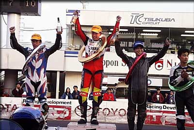 表彰台の晴れ姿。観客やチーム関係者の声援に応えます。こういう姿は何度見てもいいものです。しかし、あにはからんや彼はこの後、優勝はしたものの自分の思ったタイムを出せなかったことを悔しがり、落ち込んでいたのです。これからプロとして生きていく上で、そうした気持は必要不可欠な条件ではありますが...何にしてもその心意気や良し!ではないでしょうか。