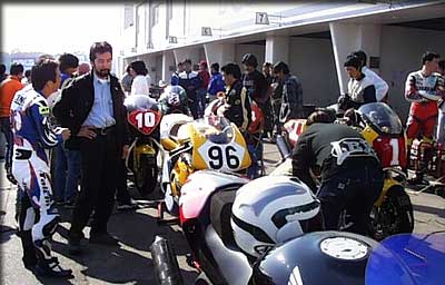 予選前のウエイティングエリアで、SB8Rに乗る新井選手とマシン談議。彼は来年自分でチームを率いて色々なレースに参戦することを目論んでいるとのことです。