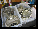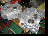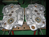 フライホイール取り付け部シャフトの6山スプラインが時代を感じさせますね。コンロッドもピカピカ。小端部の軽量加工も当時のレーシングエンジンの定番で、各部品の研磨バフ掛け仕上げとともに、まさに手作業でのチューニングです。