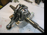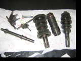 こちらはミッションシャフトです。スプロケットが付くシャフトの部分ですが、左側がノーマルのミッション、右側がNCR製クロスミッションです。