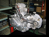 組み上げが終了したヘッドです。バルブガイドは今まで新車時からのオリジナルで通してきましたが、さすがに今回は打ち替えました。バルブステムとのクリアランスが過大になっていたからです。