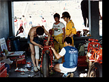 最後にこのエンジンについてのヒストリーとエピソードです。 このエンジンは1983年型のパンタTT2、所謂レーシングパンタのエンジンで、新品の状態で当時私が勤めていたドゥカティショップにありました。そのショップが1983年の夏、鈴鹿8耐に参戦し、その時スペアエンジンとして、念の為に鈴鹿まで持って行きました。チーム自体はイギリスからスポーツモーターサイクルスのチームを招聘したかたちで、ライダーはトニー・ラッターとボブ・スミス、チーフメカはスティーブ・ウィン、というのが主なメンバーでした。まだ若造だった私を初めとする日本人スタッフがお手伝いというかたちで関わっていました。 チームはその時パンタベースの650ccと750ccのエンジンを1台ずつ持ってきていて、練習用に650ccエンジンを使い、予選と決勝で750ccエンジンを使う計画になっていました。 そんな予定で最初の走行を650ccエンジンで走り始めたのですが、走行開始2周目でエ ンジントラブルが発生します。後で判明した原因は、マロッシのキャブレターのファ ンネルを固定しているボルトが外れ落ちて、それがエンジンの中に吸い込まれてし まったということでした。当然ながら、たった2周で650ccエンジンはオシャカです。 さて、ここでどうするか考えましたが、このタイミングで虎の子の750ccエンジンの 投入はいくらなんでも無謀です。そこで念の為に持っていっていたTT2の600ccエン ジンが役に立ちました。これに載せ替えて予選まで走ってしまう事にしたのです。 という訳で、この時のレースで公式予選結果のタイムを出したのは600ccのTT2エン ジンだったというわけです。 この後決勝に向かって750ccエンジンにエンジンの載せ替えを行ったわけですが、一つ問題が発生しました。それはエンジンを載せ替えた場合、再車検が必要になるということでした。最初の車検では排気量のチェックは行いませんから、600ccエンジンでも車検に通る事は問題なかったのですが、予選後に載せ替えたとなるとそうは行きません。 レギュレーションの上限を超える排気量のエンジンで予選を走ったのではないかということになり、当然ながら降ろしたエンジンの排気量チェックが入ります。 当時のTTF1の排気量上限は750ccです。750cc以上の排気量のパンタなんてこの世に存在しねーよ、なんて言ってみたところで、鈴鹿の車検オフィシャルには通じるはずもありません。排気量を測られて600cc以下である事が判明すれば、それはそれでカテゴリーが違うということで大問題、たぶん失格です。 そこで我々の下した手は、日本人抜きで再車検に行ってもらう事でした。日本人の関係者がその場にいたら絶対事情を聞かれて排気量チェックされます。ですから外人だけで行って、とにかく何を言われてもわからないフリをして英語のスラングでまくし立てて車検オフィシャルを煙に巻いて来い、ということにしたのでした。さすが海千山千のスティーブ・ウィンさん、見事に、それもやすやすと再車検を通して来ましたね。 ニコニコして帰ってきて一言、「No problem!」ですって。 そんなエピソードのあったこのTT2エンジンですが、その8耐のレースが終わった後、私が個人的に会社から買い取り、はれて自分のものとしたのでした。当時の金額としては結構高かった覚えがありますが、私も若かったし、どうしてもこのエンジンが欲しかったという訳ですね。 その後暫く、私はこのエンジンを研究しながらサンデーレース等で遊ばせてもらいました。ハリス製のレーシングパンタフレームにこのエンジンを載せて、筑波やFISCOを走り回りました。手に入れてあまり時間の経たないうちに、オリジナルのバルブ、ピストン、シリンダー等は外して、社外品のバルブやピストン、鋳鉄スリーブ入りの改造シリンダー等を組み込んで走るようになりました。当時はそうした部品の入手もかなり容易だったと記憶しています。おかげでオリジナルの部品が良い状態のまま今まで残っていたという訳です。 そしてある日の晩のことでした。バイクリフト(先日まで20年間使い続けて来たアレです)の上にこのバイクを載せて持ち上げたまま、私は傍らで何かの作業をしていました。深夜の静けさの中で、その時いきなりバイクから「パキッ」っと大きな音がしたのです。 今のは何?と思いバイクを点検しましたが、何も異常はありません。ちょうどエンジンを開けてオーバーホールをしようとしていた矢先の事でした。そして数日後エンジンを開けて、その音の原因が判明するのです。クランクケースの中央辺り、クランクベアリングの周りにはっきりとクラックが入っていました。 この事件を期に、既に時代はパンタも750ccエンジンの時代に入っていた事もあり、このエンジンはバラバラに分解されて箱に詰められて保存される事になったのでした。 とは言っても、部品によっては他のレース用エンジンに流用されて使い続けられたものもありましたが。 しまい込まれてから殆